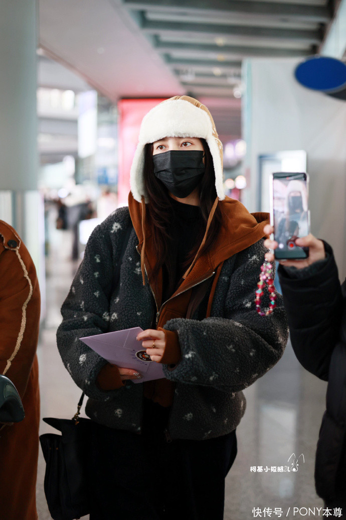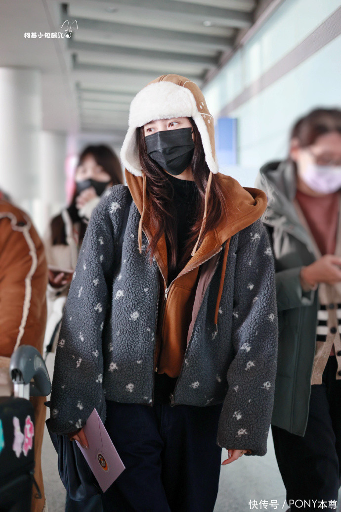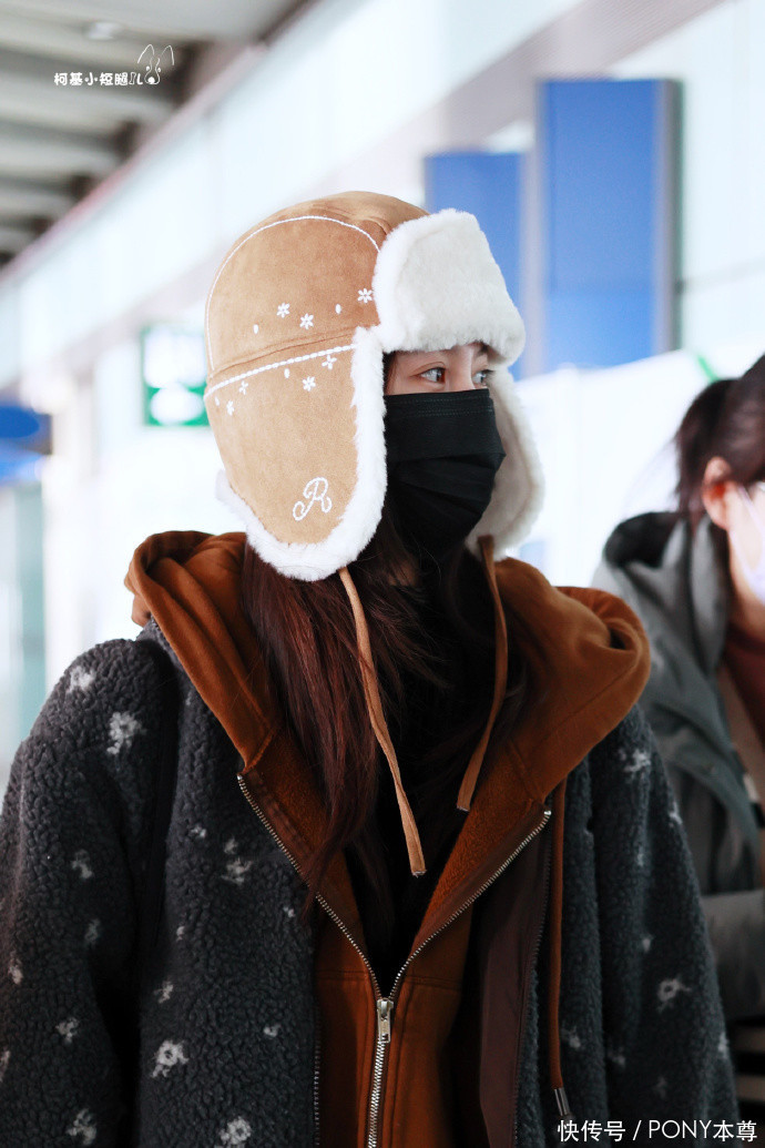 今年流行的护耳帽,被宋妍霏戴出了呆萌少女的感觉!卡其色和白色毛绒拼接设计,显白又减龄!建议想要保暖的女生都去尝试,让佩戴者的头显的小小的!宋妍霏本来是属于略长的脸型,佩戴了这款护耳毛绒雷锋帽后,脸型都变短了,一下子减龄不少!
